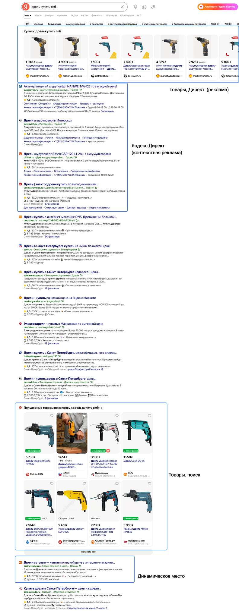 Вид поисковой выдачи за последнее время значительно усложнился. Это уже не только органические позиции и контекст, но и спец. блоки размещения и новые рекламные форматы – все они конкурируют за внимание пользователей.