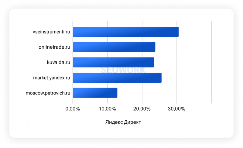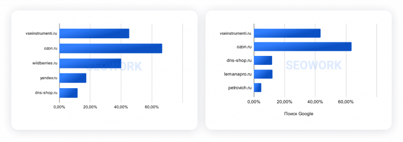 Отраслевые рейтинги SEOWORK формируются на больших данных на базе аналитических продуктов: SEOWORK (органическая выдача), DataForce ADS (реклама и динамические места) и DataForce AI (блоки выдачи с ИИ ответами).
