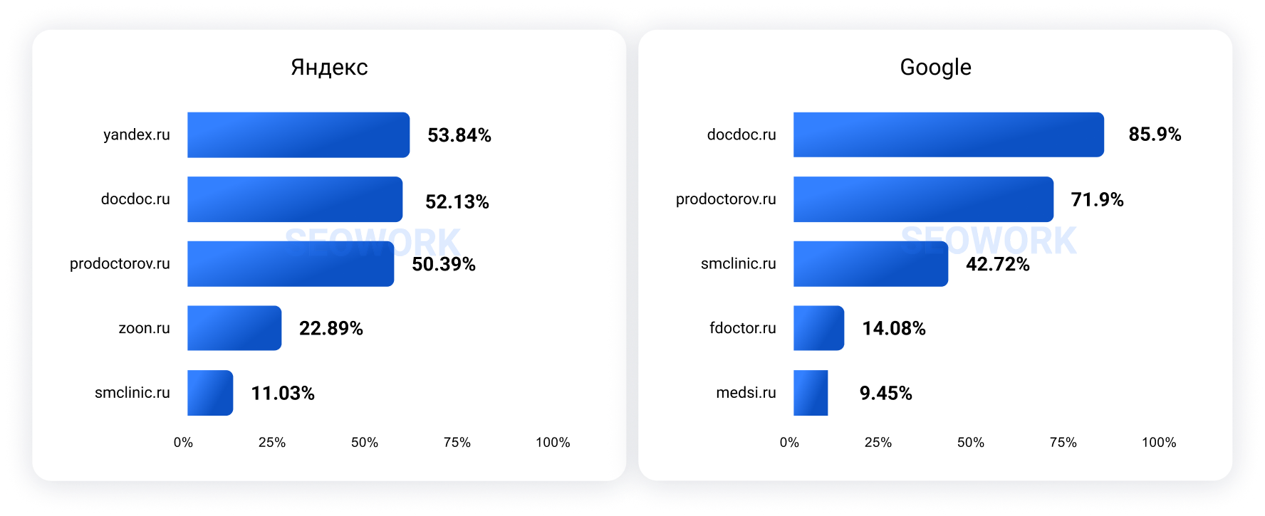 Отраслевые рейтинги SEOWORK формируются на больших данных на базе аналитических продуктов: SEOWORK (органическая выдача), DataForce ADS (реклама и динамические места) и DataForce AI (блоки выдачи с ИИ ответами).