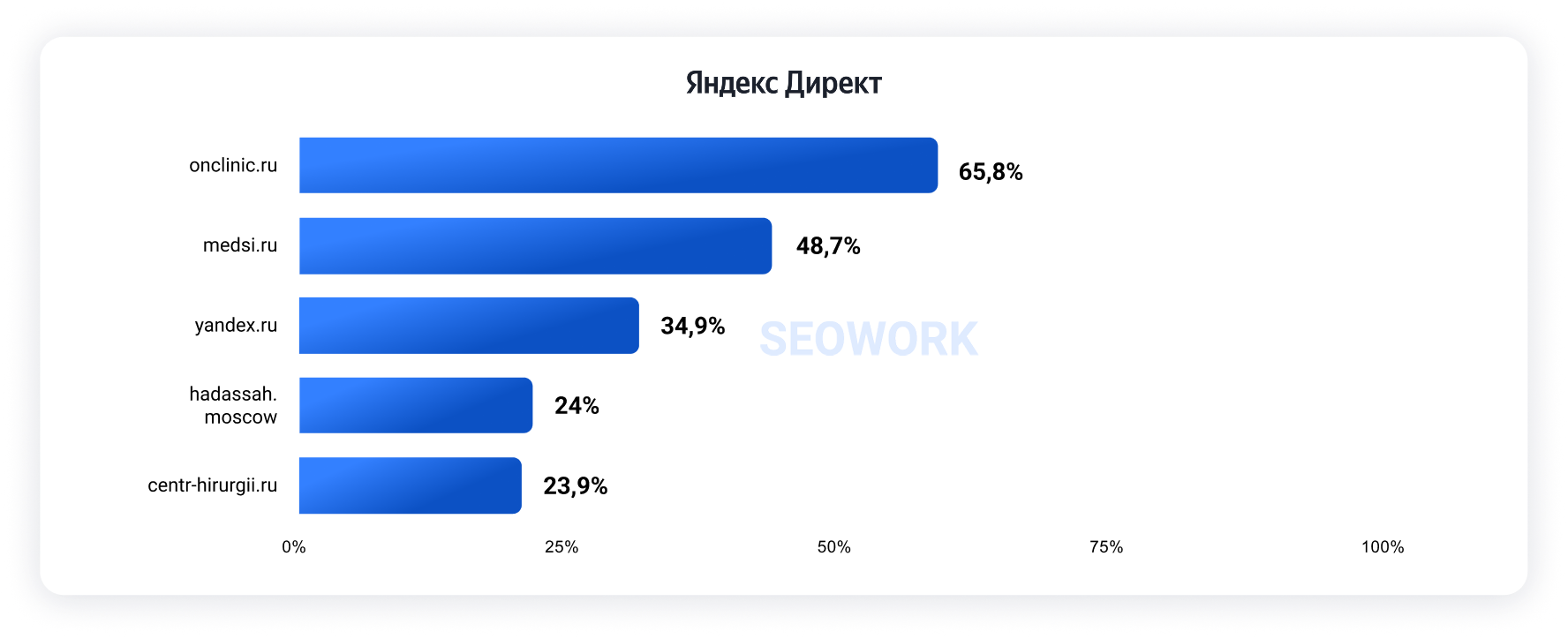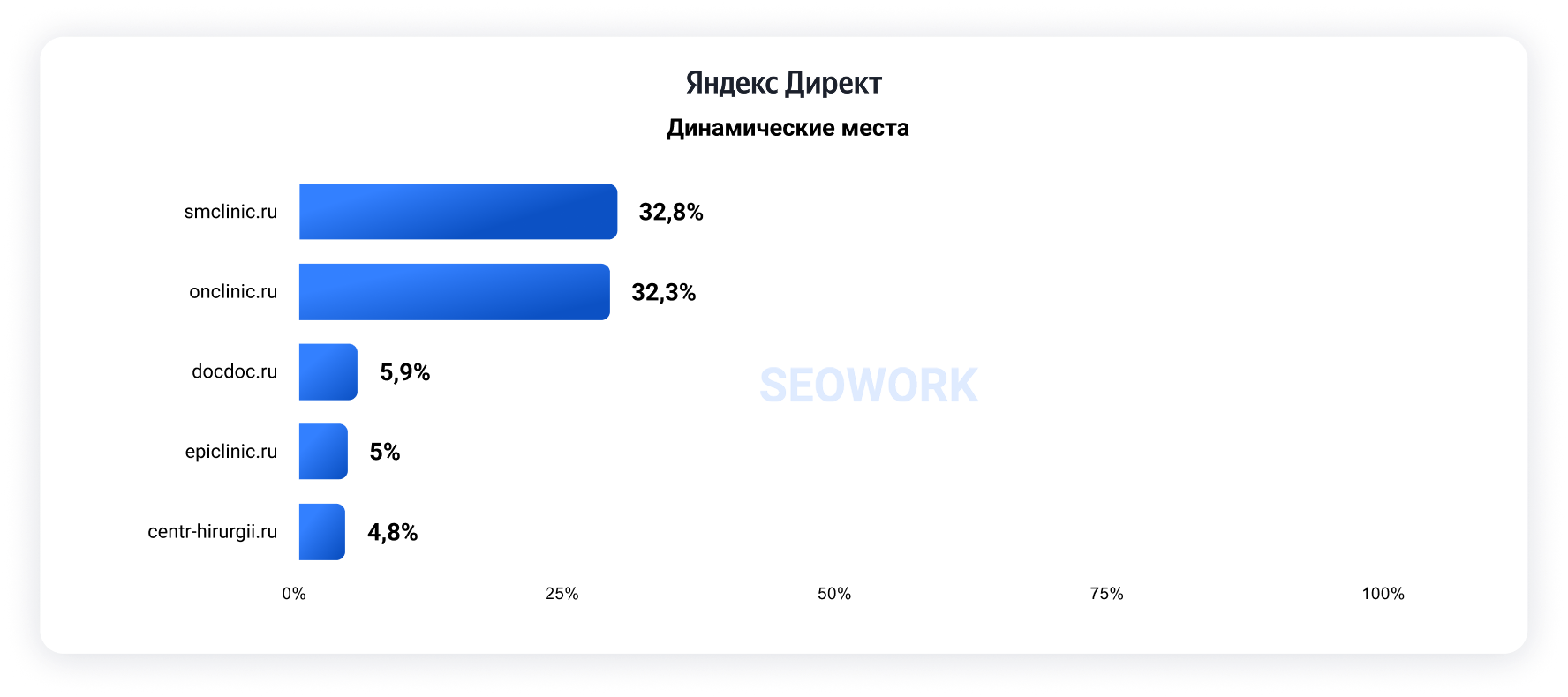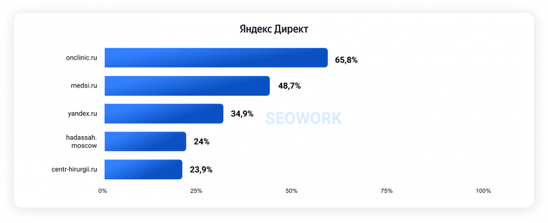 Рейтинг строится на основе метрики SOI и показывает долю аудитории, которая видит рекламные объявления на первых трех строчках Директа