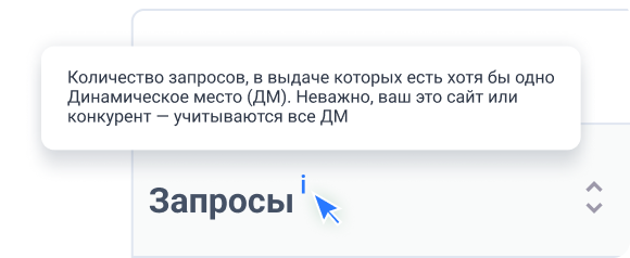 Вы сможете с первого взгляда оценить по запросу не только количество конкурентов, а их качество и устойчивость в Динамических местах. Теперь видно: