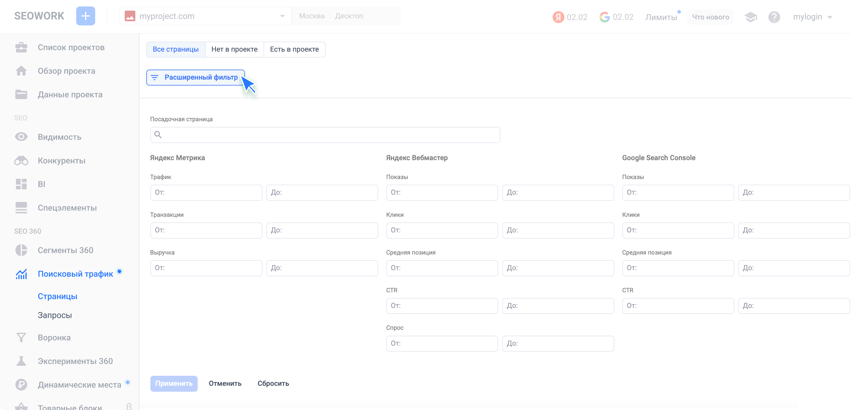 Можно анализировать не только позиции и видимость, но и бизнес-результат — какие страницы реально приносят трафик и деньги.