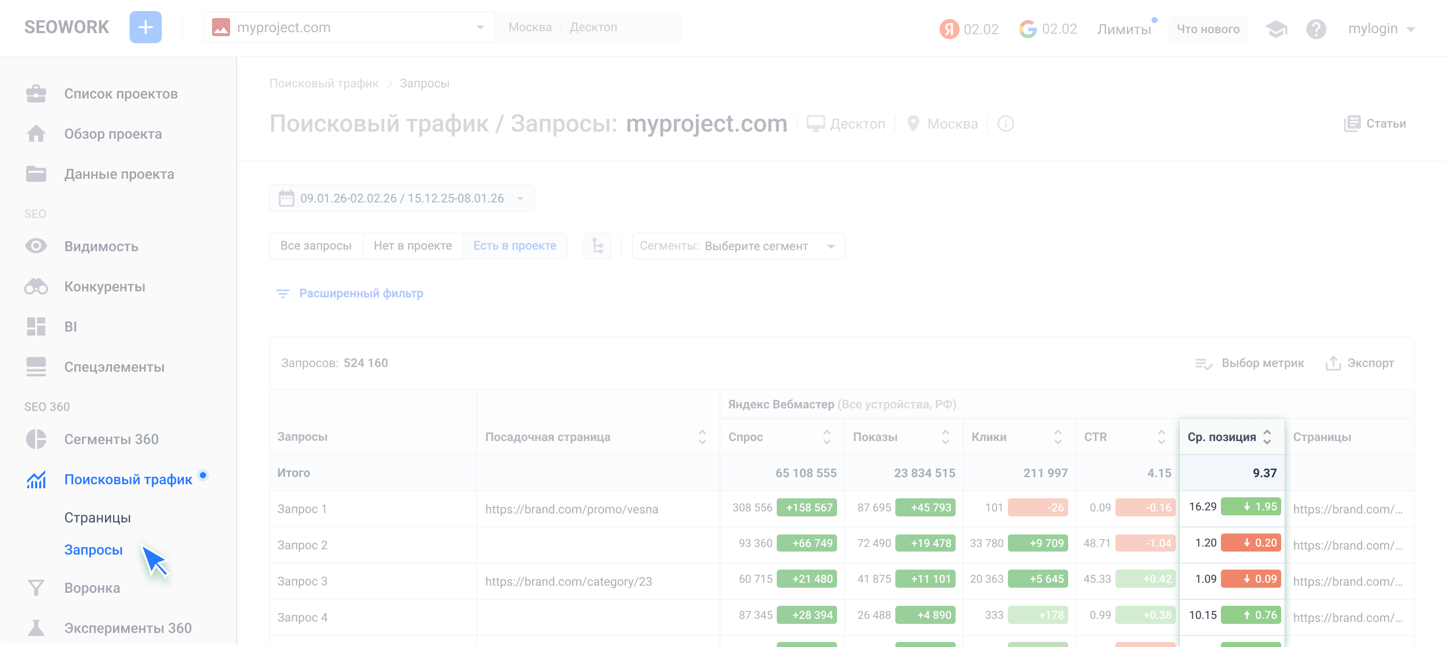 Мы обновили SEOWORK и доработали ключевые модули сервиса. Эти изменения делают аналитику понятнее, отчёты — стабильнее, а работу с SEO-данными — удобнее и прозрачнее.